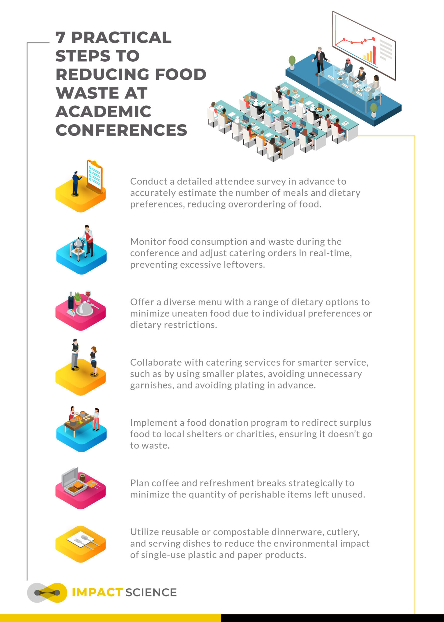 Are you interested in how to reduce food waste but not sure where to begin? The infographic below contains 7 practical steps conference organizers can take to reduce food waste at their events.